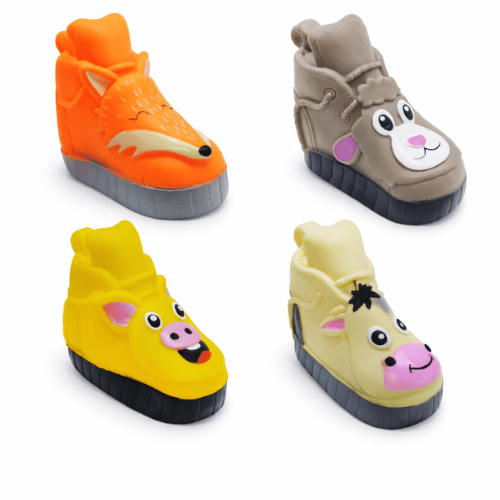 Dale a tu mascota horas de diversión con este juguete con sonido para perros en diseño tipo zapatilla con caritas de animales. Su formato es perfecto para que tu perro lo muerda, lo lleve y juegue de forma segura, ayudando a liberar energía y reducir el estrés.