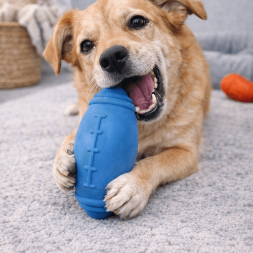 El mordedor rugby con sonido para perros es ideal para mantener a tu mascota entretenida y activa, mientras satisface su necesidad natural de masticar. Su diseño tipo balón rugby facilita el agarre y hace el juego más dinámico, perfecto para lanzar, perseguir y morder.