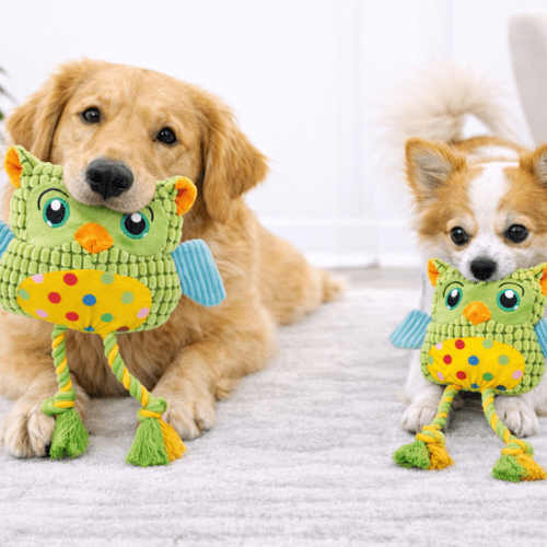 El peluche suave en la parte superior aporta confort, ideal para perros que disfrutan juguetes blandos. Su tamaño práctico lo hace perfecto para cachorros y perros pequeños o medianos.