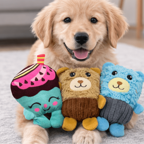 El peluche para perros con diseño de postres es una opción divertida y colorida para mantener a tu mascota entretenida durante el día. Este set incluye figuras tipo cupcakes y helado con detalles llamativos como sprinkles y caritas bordadas que captan rápidamente la atención de los perros.